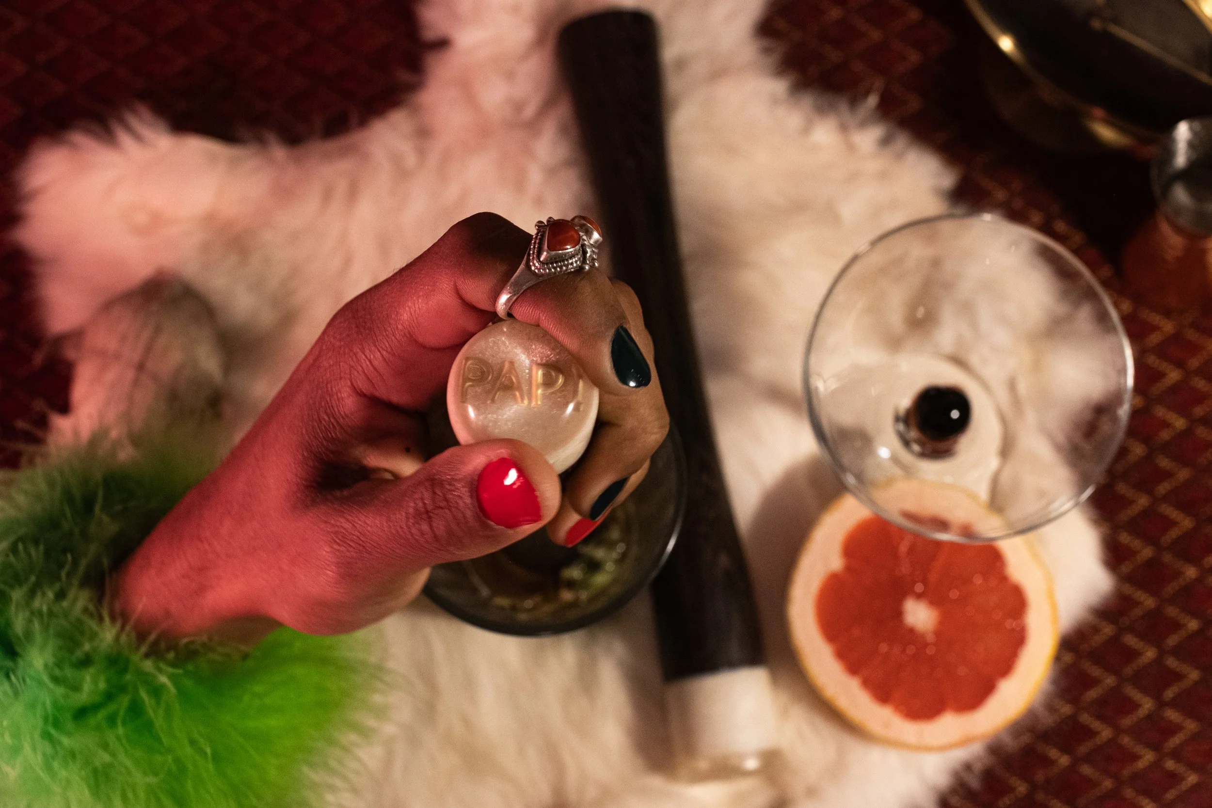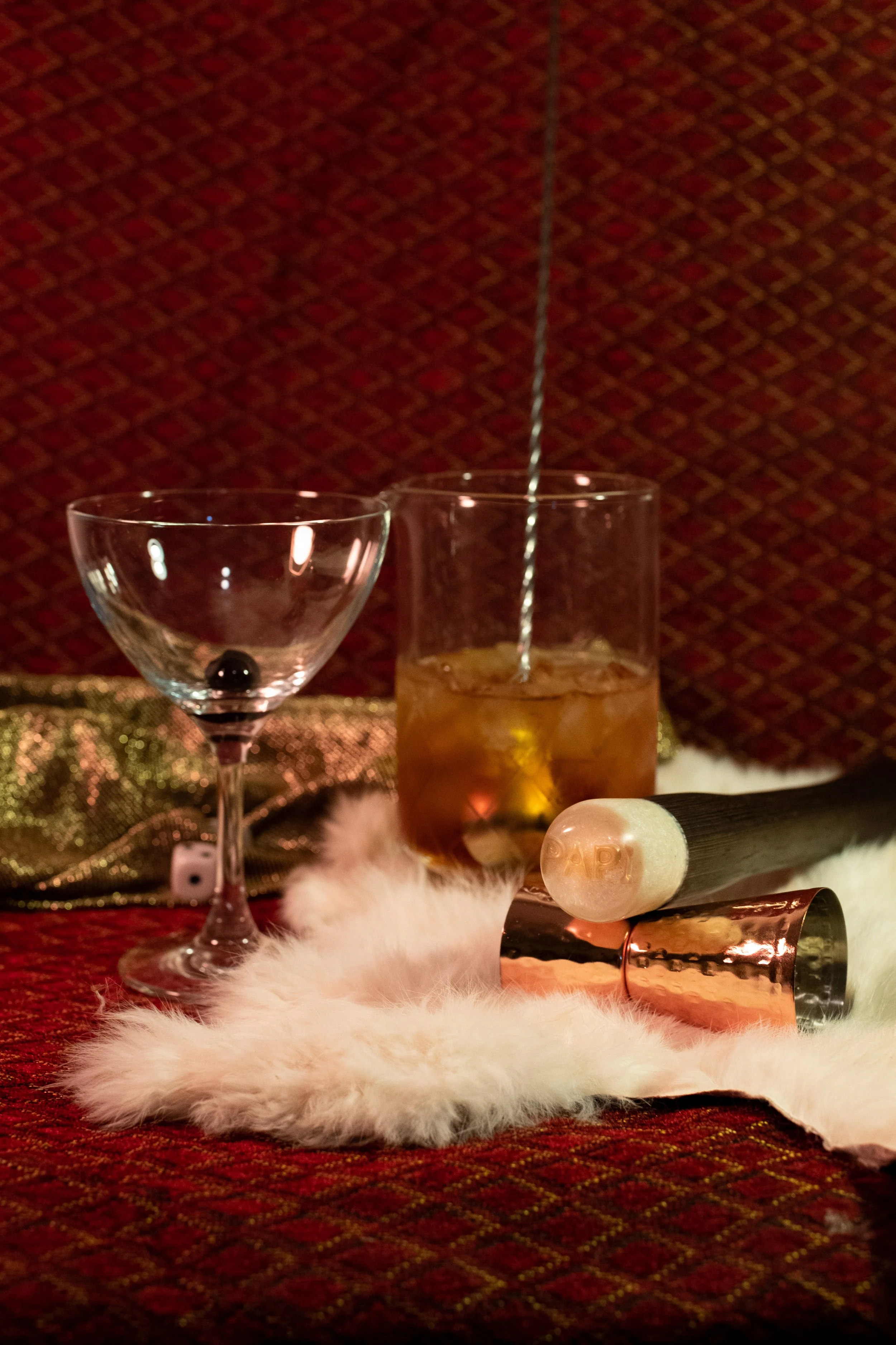 Cocktail muddlers made from wengue, epoxy resin, gold plastic stickers